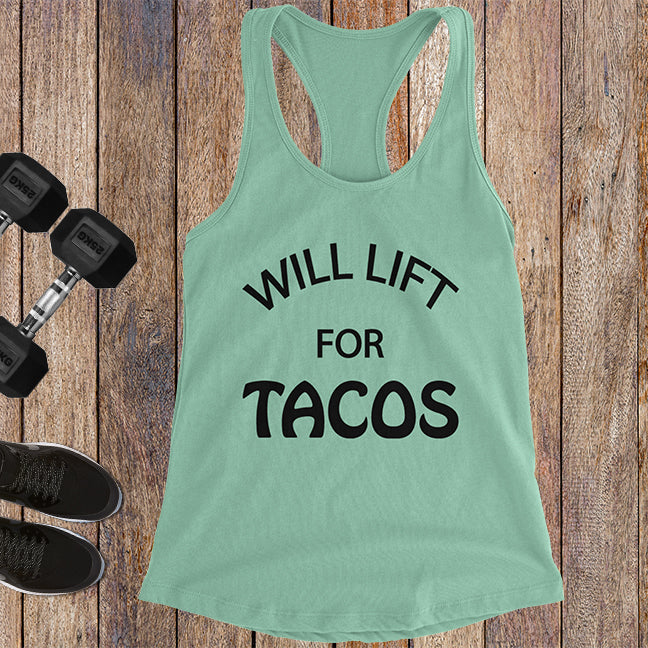 Will Lift For Tacos - Black Letters - Fitness Workout Tank - Motivation